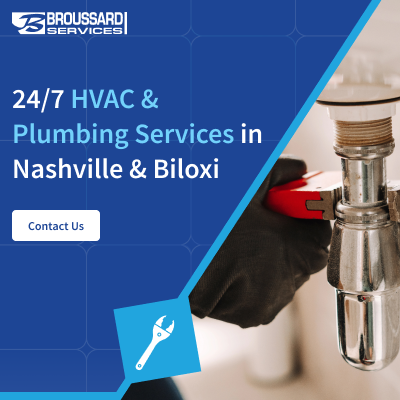 Broussard Services is a reliable plumbing and HVAC contractor serving the Nashville Metro area. From residential plumbing services to professional care as residential plumbing and HVAC contractors, we also serve the Mississippi Gulf Coast. If you need a skilled plumber, a heating contractor, or an air conditioning contractor, our team can be there for you. We specialize in residential and commercial plumbing services to support your home or business. Our residential and commercial HVAC services can also keep you comfortable year-round. With a reputation built on trust, quality workmanship, and exceptional service, we are your choice for all plumbing and HVAC needs. Let us handle your comfort and plumbing needs with care.