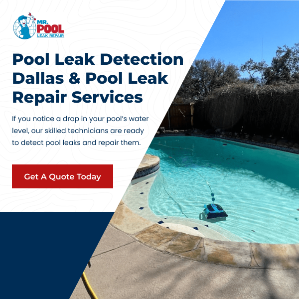 Mr. Pool Leak Repair is your trusted pool repair company serving Dallas and surrounding areas. We specialize in pool leak repair, pool leak detection, and pool crack repair. Our skilled technicians provide reliable diagnostics, fast response times, and full-service repairs to ensure your swimming pool stays leak-free. Whether you need under-deck repairs, skimmer fixes, seal replacements, or complete pool renovations, we offer high-quality work backed by the longest warranties in the industry. Family-owned for 13 years, Mr. Pool Leak Repair guarantees efficient solutions and top-tier service. Call us at 214-972-3330 today!